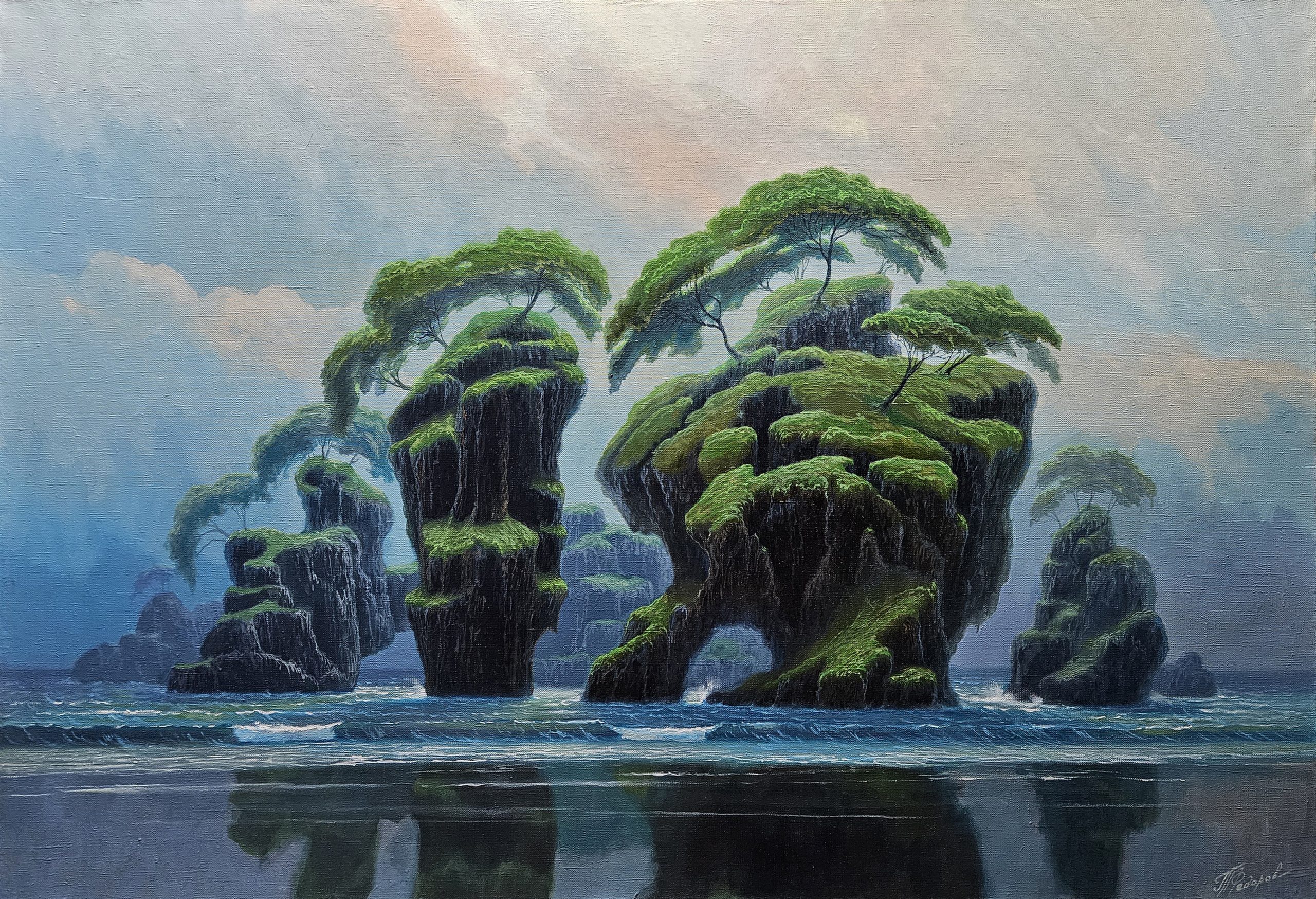 In my painting, I capture the majestic beauty of isolated tree islands rising surreally from the water. Masked between realism and surrealism, I tell a story of nature’s power and stillness, embedded in rich oil colors that masterfully capture light and shadow. This work is meant to inspire thoughts about harmony and survival in isolated worlds, while bringing an atmosphere of peace and contemplation into any space.